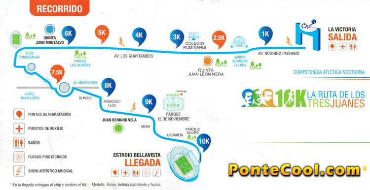 La concentración será desde las 17h00 en el sector de la Victoria, en este lugar los atletas realizaran su calentamiento y preparación a la competencia que tiene un recorrido de 10 kilómetros.